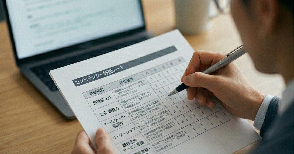 コンピテンシー評価で陥りやすい失敗は、評価者の主観によるばらつきです。「なんとなく優秀そう」という印象に引きずられず、行動事実に基づいた評価をするために、評価シートを整備し、複数の面接官が同じ基準でスコアリングする仕組みが欠かせません。